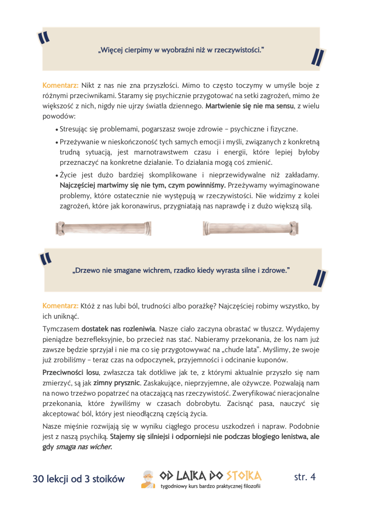 Pokażemy Ci, jak każdego dnia możesz praktykować 4 najważniejsze stoickie wartości: odwagę, umiar, sprawiedliwość i mądrość.
